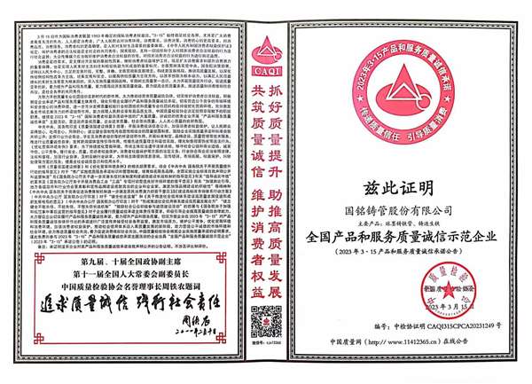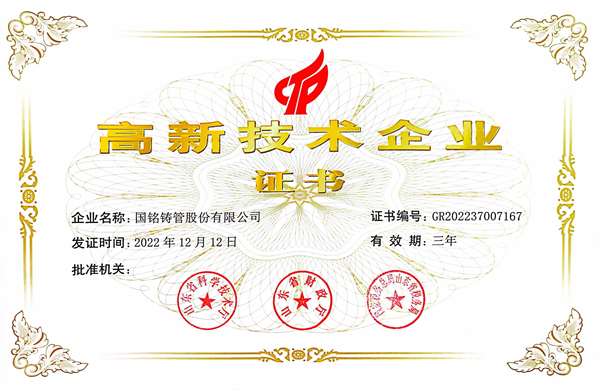 在半個多世紀(jì)的崢嶸歲月中,國銘鑄管依托雄厚實力和專業(yè)技術(shù)品質(zhì),堅持“技術(shù)提升質(zhì)量,品質(zhì)鑄就品牌,創(chuàng)新推動發(fā)展”的企業(yè)宗旨,為客戶提供滿意的產(chǎn)品和服務(wù)